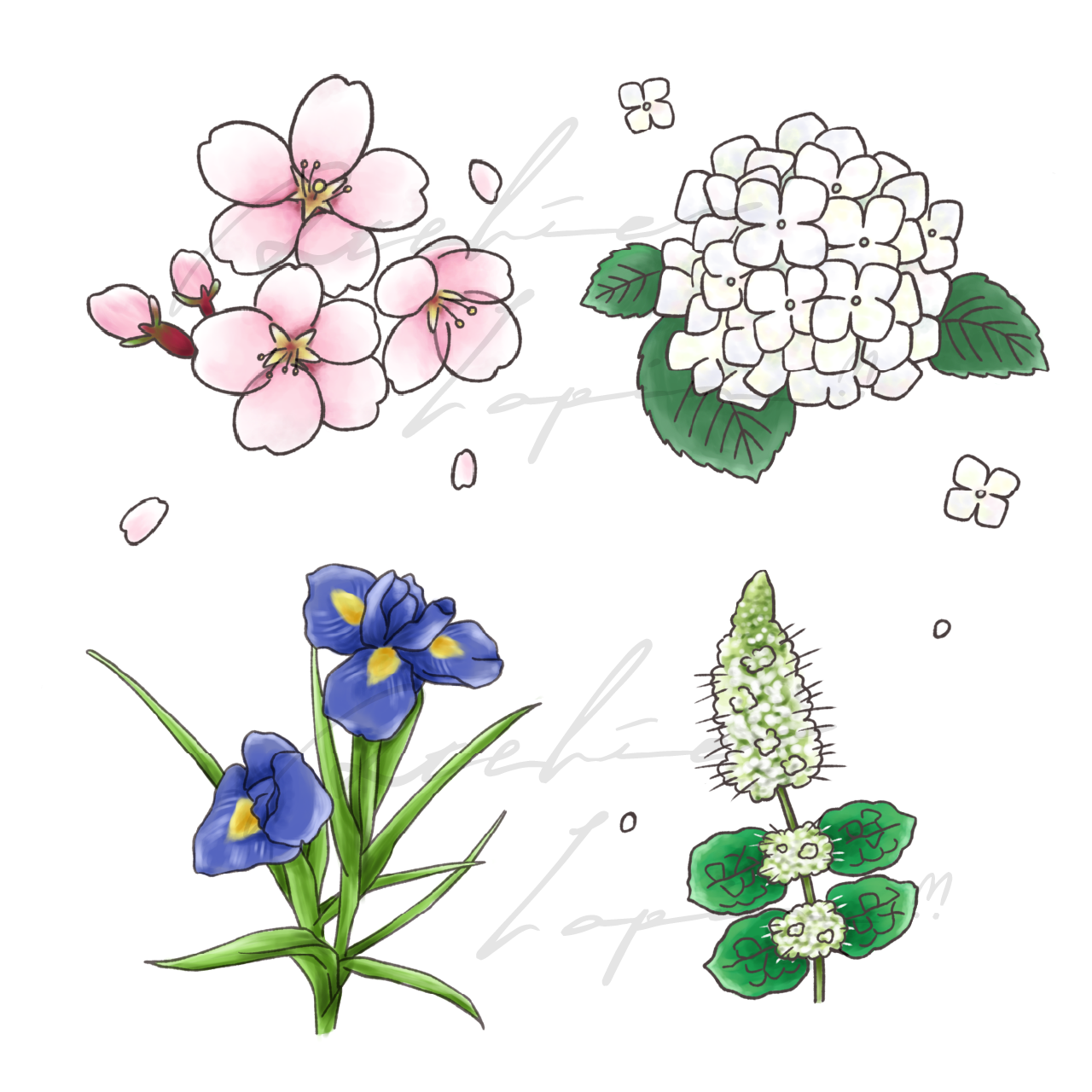 (桜、あじさい、アイリス、ミント)